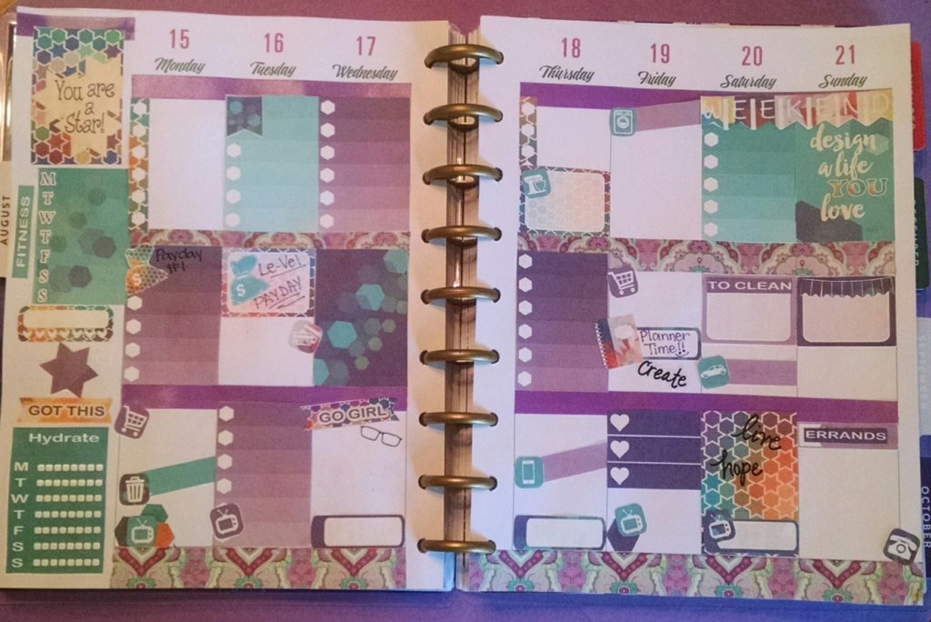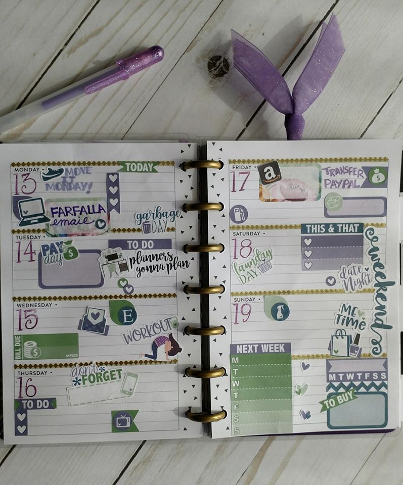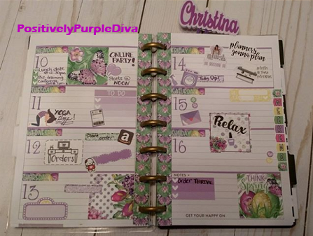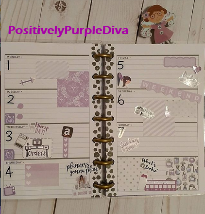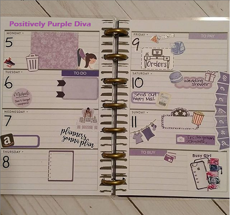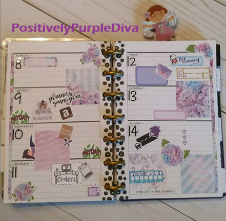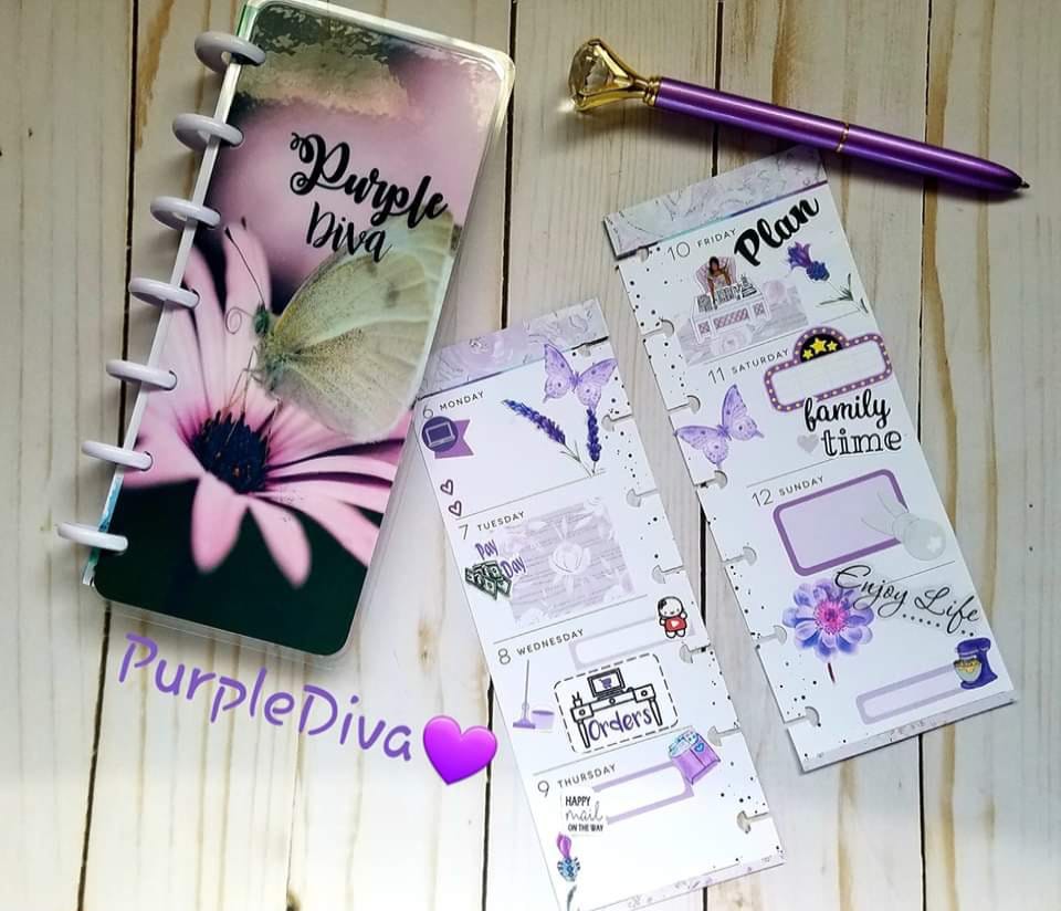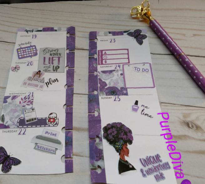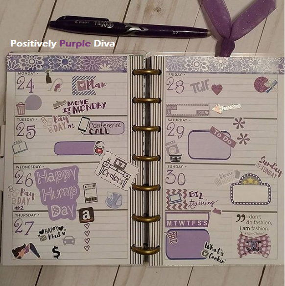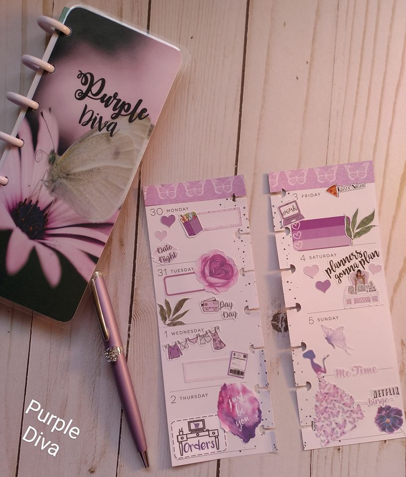 Since I’ve got you wondering what Purplicious Planning is, do let me explain. If you know my story, I am THE PURPLE DIVA. It didn’t happen overnight, yet ever so gradually. I am a domestic violence survivor and I came out of my shell like a snail. It took time to tell my story and start my journey of spreading awareness about this silent killer known as domestic violence. I began wearing little bits of purple here and there to remind myself of my journey and how far I had come, then before you know it my closet was bursting with tons of purples! I started self-proclaiming myself as the “Purple Diva” and it has now stuck. 😉 Yes, I do wear other colors just as long as the outfit has some purples in it. And you will find the same in my planner spreads. So when I speak of Purplicious Planning, I mean that my planner spreads have a purple vibe going on and for me, it is to remind myself once again of my journey…where I’ve been, where I am now, and where I’m going.